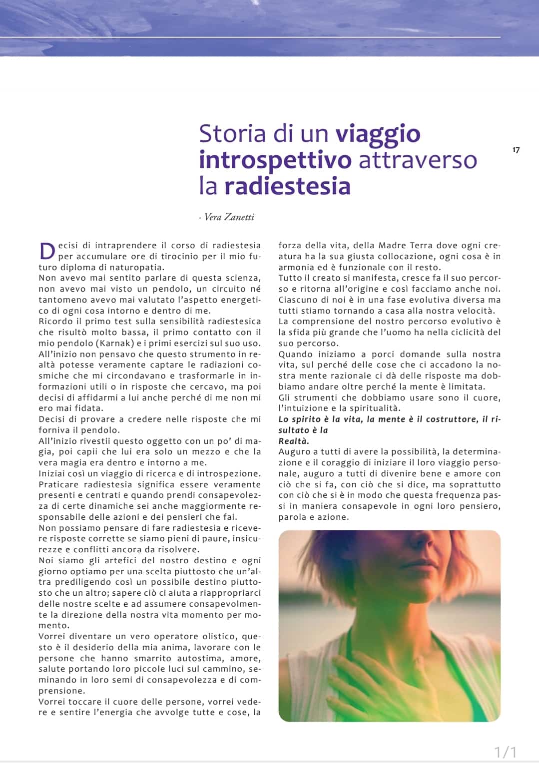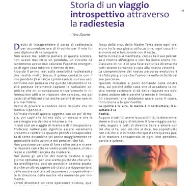 Accanto a queste discipline, pratico e insegno la radiestesia, uno strumento sottile e potente che consente di percepire le frequenze invisibili dell’ambiente e dell’essere umano. Il pendolo, per me, è un compagno di viaggio: mi aiuta a indagare squilibri energetici, a ricevere indicazioni profonde e a connettermi con quella parte silenziosa e saggia che ognuno di noi porta dentro.